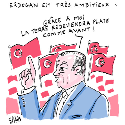Erdogan est ambitieux, il veut recréer un nouvel empire Ottoman. Il veut fédérer tous les musulmans derrière sa bannière écarlate. Et pour cela il faut continuer à les endormir, à les abrutir au maximum. C’est pour ça qu’il a créé un super ministère des affaires religieuses doté d’un budget colossal, avec un numéro vert « Allo Fatwa » disponible 24/24, une page Facebook très dynamique, d’autres pages sur d’autres réseaux sociaux et une chaîne de télévision religieuse dans laquelle on soutient encore que la Terre est plate.