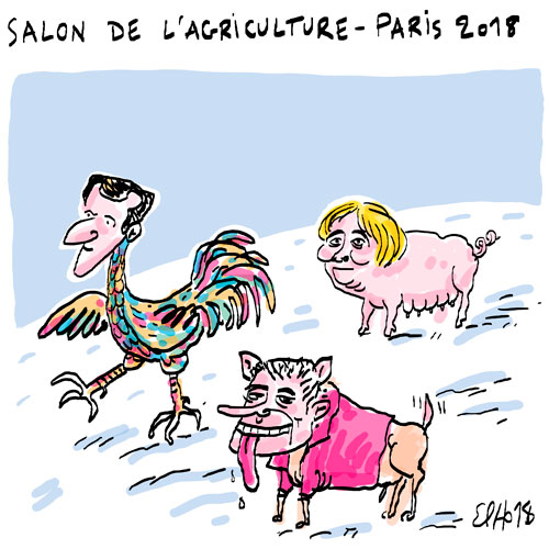 C’est la fin du Salon de l’Agriculture de Paris. On a vu les vaches, les cochons, les coqs, les chiens (policiers) et surtout les politiciens qui sont les vraies bêtes de foire de ce rendez-vous annuel. Cette fois c’est Macron (12 heures), Wauquiez (2 jours) et Le Pen (temps non communiqué) qui ont remporté les premières places de cette compétition politique animale.