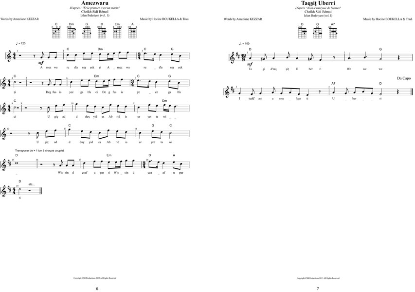Aujourd’hui ces chansons, écrites par Ameziane Kezzar, mises en musique et interprétées par Hocine Boukella , alias Cheikh Sidi Bémol, sont publiées sous forme de deux recueils de partitions superbement illustrées par Elho, comprenant les textes originaux en kabyle et leur traductions en français.